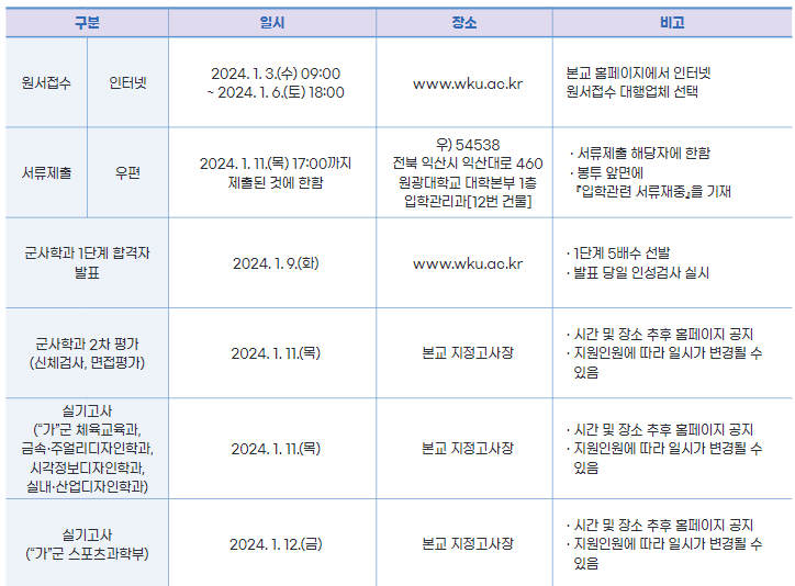 *안내된 내용은 원광대학교 입학처에서 공지한 내용을 바탕으로 합니다.